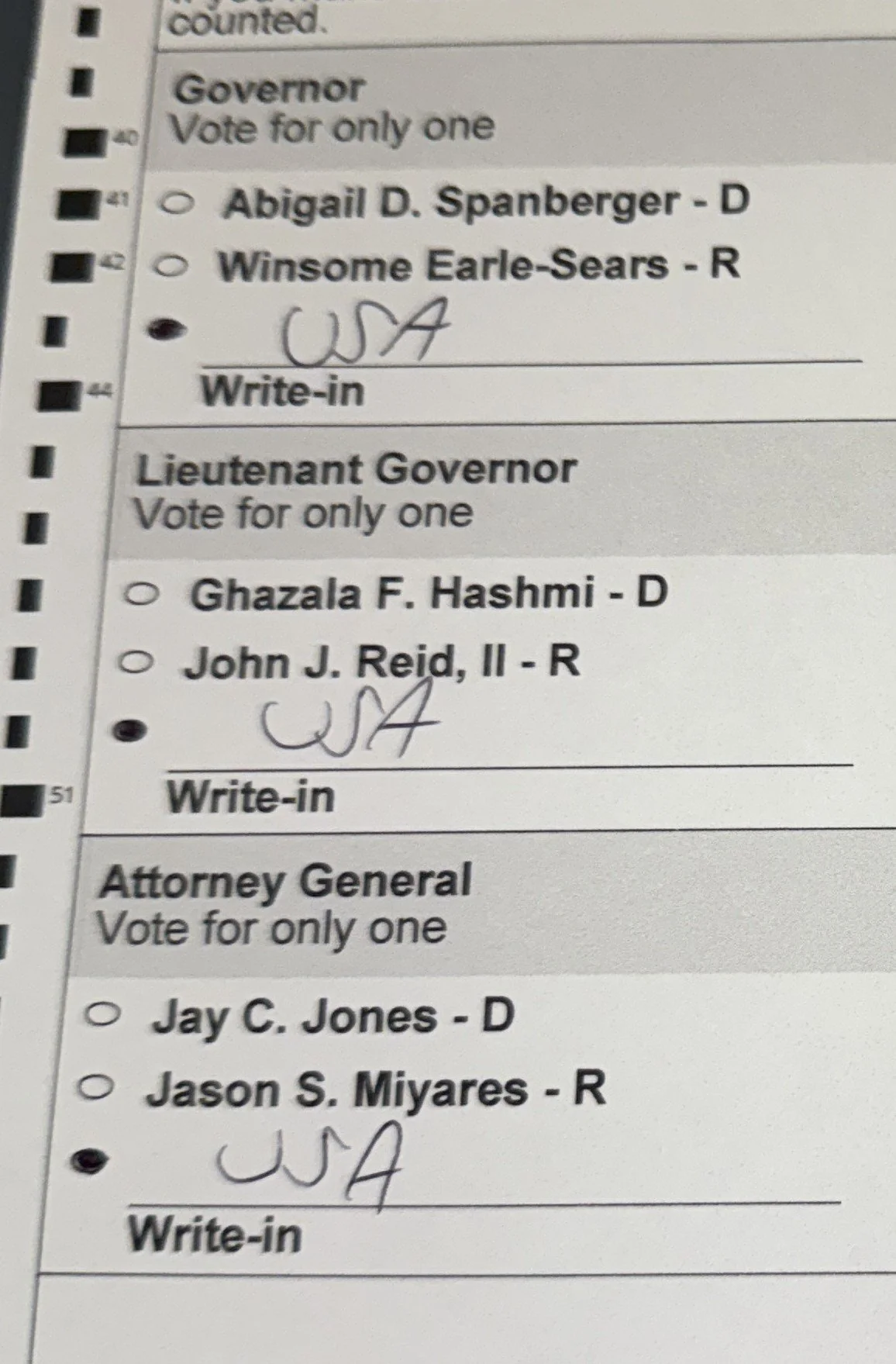 Cast your vote on Nov 4, 2026 for anyone except the Democrat or Republican candidates. If there are no viable 3rd party candidates on the ballot, use your write-in option and cast your vote for “USA”.